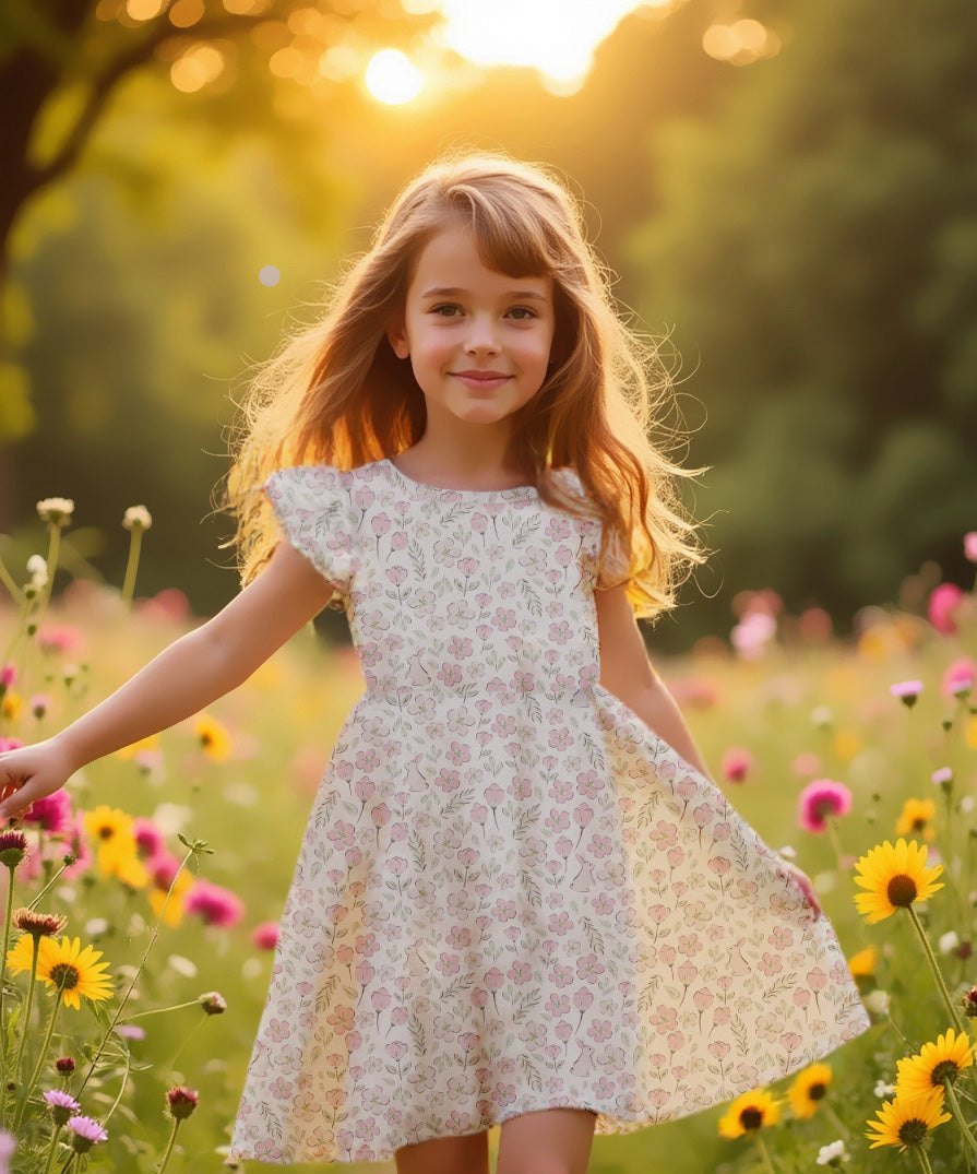 ORGANIC COTTON EMILIA FLUTTER DRESS - BLUSH MEADOW