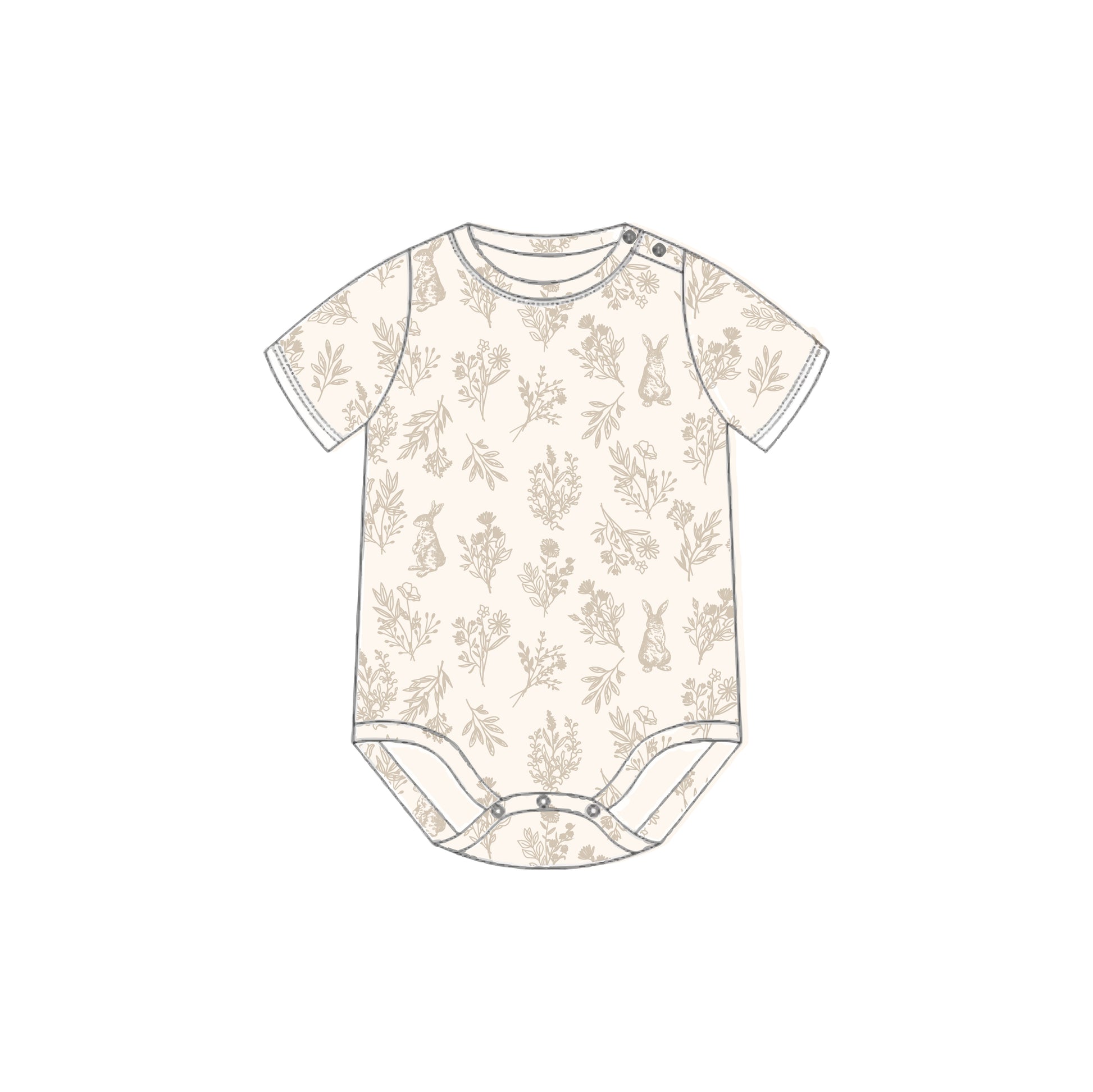 The Brooklyn Romper – Whispering Thicket blends playful design with everyday practicality. Rabbits and leafy details bring woodland charm to a silhouette made for comfort.