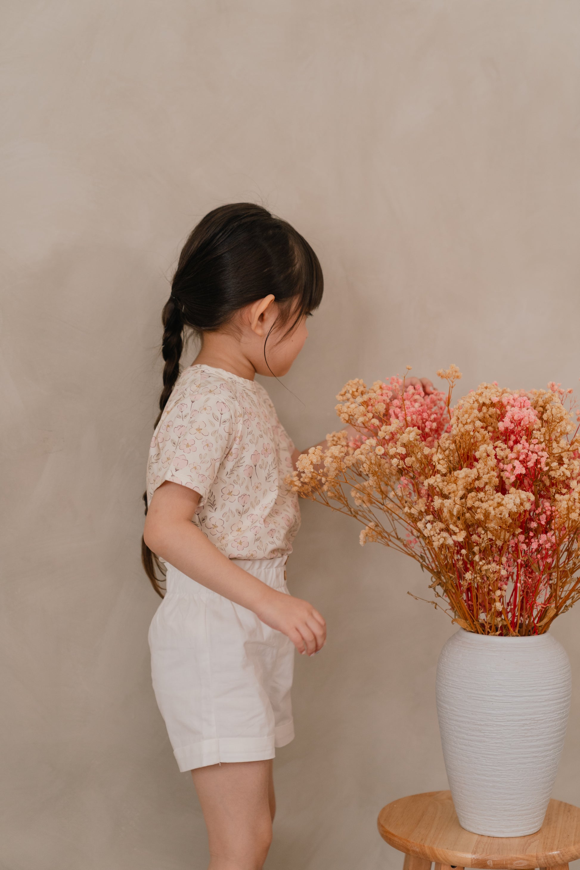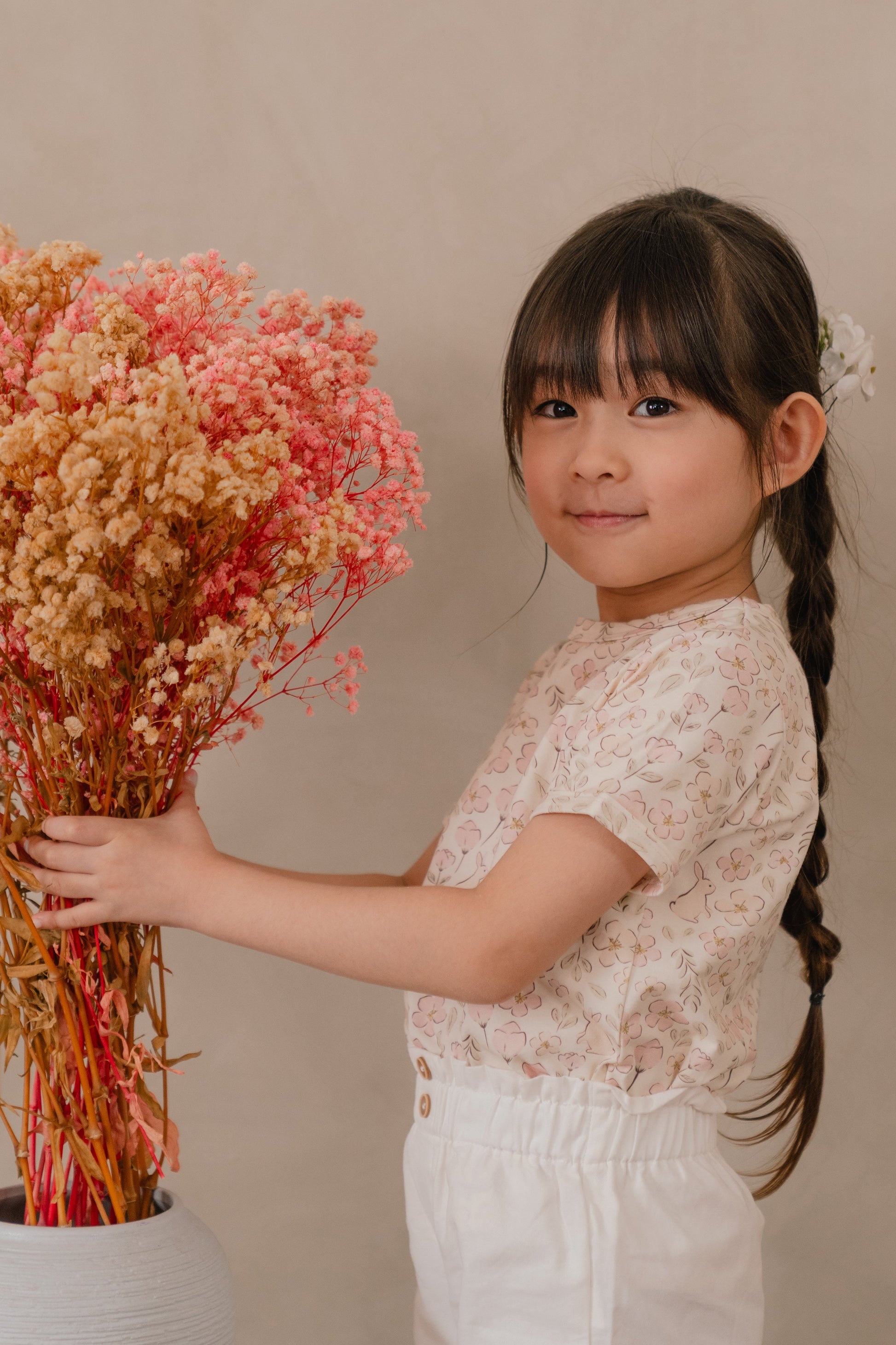 Easy to mix and match with bloomers, leggings, or shorts, it’s a wardrobe essential filled with floral charm. Whether styled simply for play or dressed up for outings, this tee adds a touch of brightness to every moment.