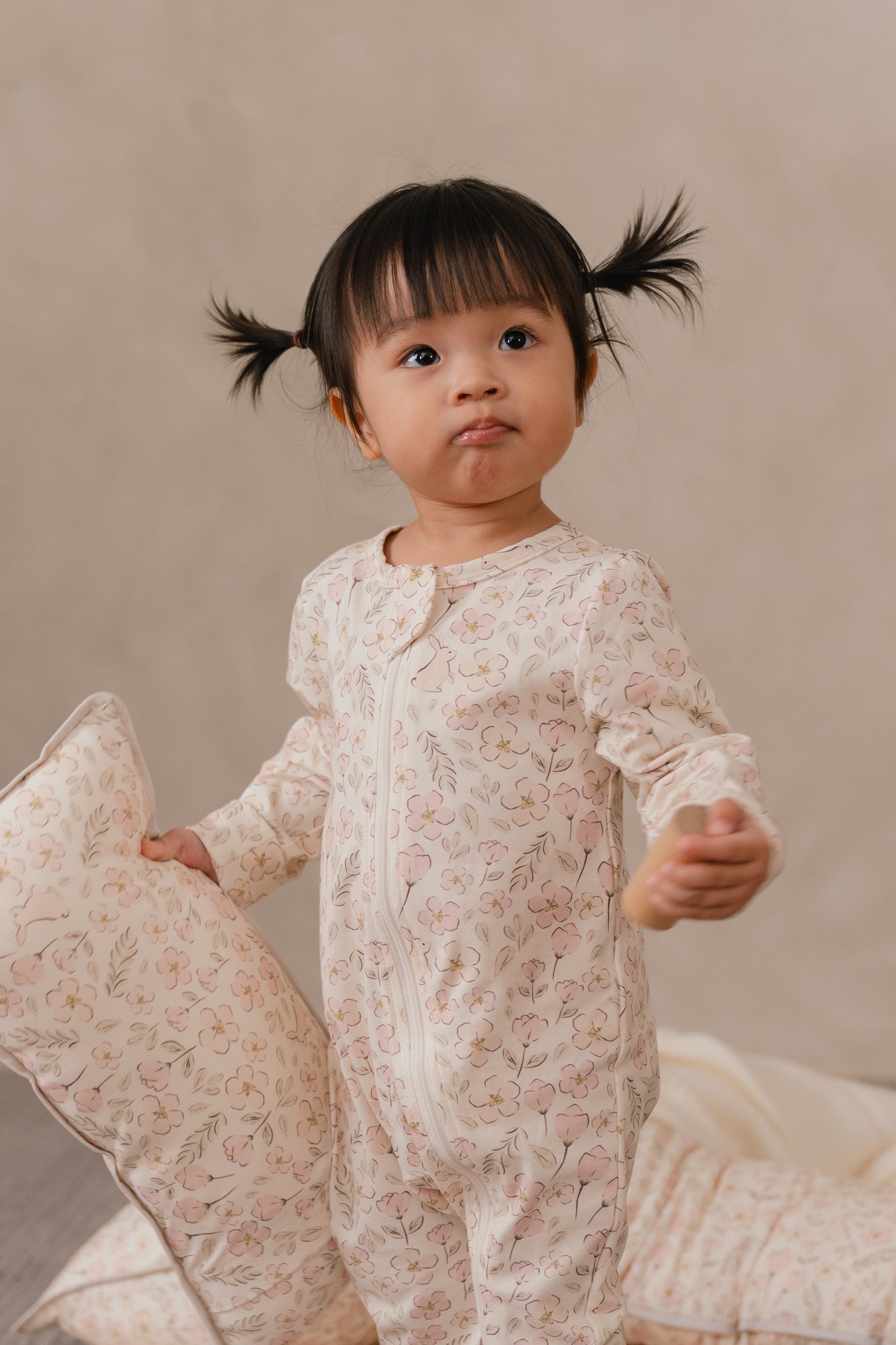 Soft and timeless, the Zyla Zipsuit – Blush Meadow wraps your little one in floral elegance. Featuring our Blush Meadow print, delicate pink blossoms with leafy accents create a design that feels playful, classic, and perfectly suited for sleep, play, or cuddles.